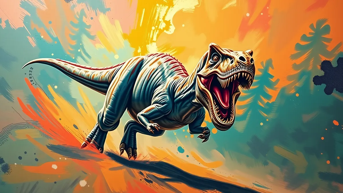 A colorful depiction of a dinosaur.