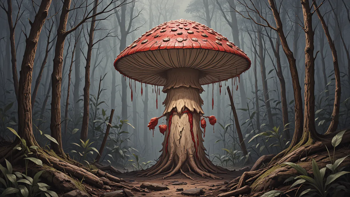 A red mushroom showcasing it's grandeur in the middle of the forest.